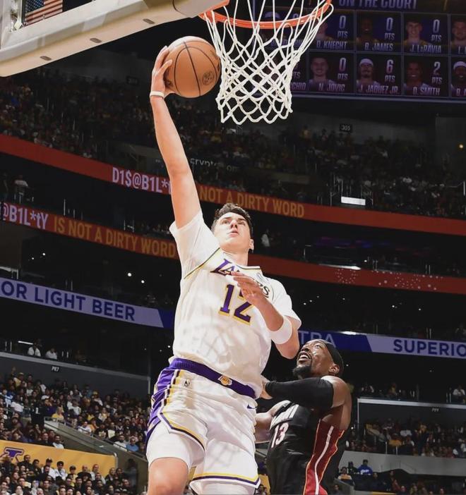 說回比賽,湖人開局16-6一舉拉開到兩位數。東契奇手感不佳,第一節投籃5中1,其中三分球4中0。不過東契奇跟里夫斯各送出4記助攻,盤活了全隊。海斯吃餅吃到吐,出戰7分鐘5投5中砍下11分,還投進了湖人生涯首記三分球。