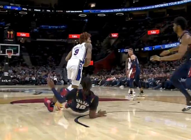 首節(jié)開打,米切爾突破吸引包夾,助攻加蘭命中大空位三分,投進本賽季個人首球。馬克西連續(xù)失誤,米切爾連續(xù)強投三分命中,騎士開局打出17-4,直接打停76人。烏布雷強打籃下造犯規(guī),及時止血,隨后接球再中空位三分,一人連拿6分將分差縮小至9分。騎士連續(xù)送出擊地妙傳,莫布利籃下接球雙手暴扣終結,隨后小南斯跳投三分不中,阿倫二次進攻想要扣籃,德拉蒙德跟防送上個人本節(jié)第三次封蓋,首節(jié)打完, 騎士41-27領先76人14分。